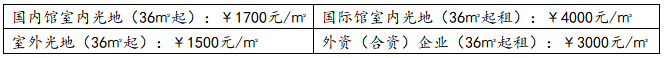 2、光地(不低于36 m²起租);配置:展出场地、保安服务、公共责任保险、无任何设施