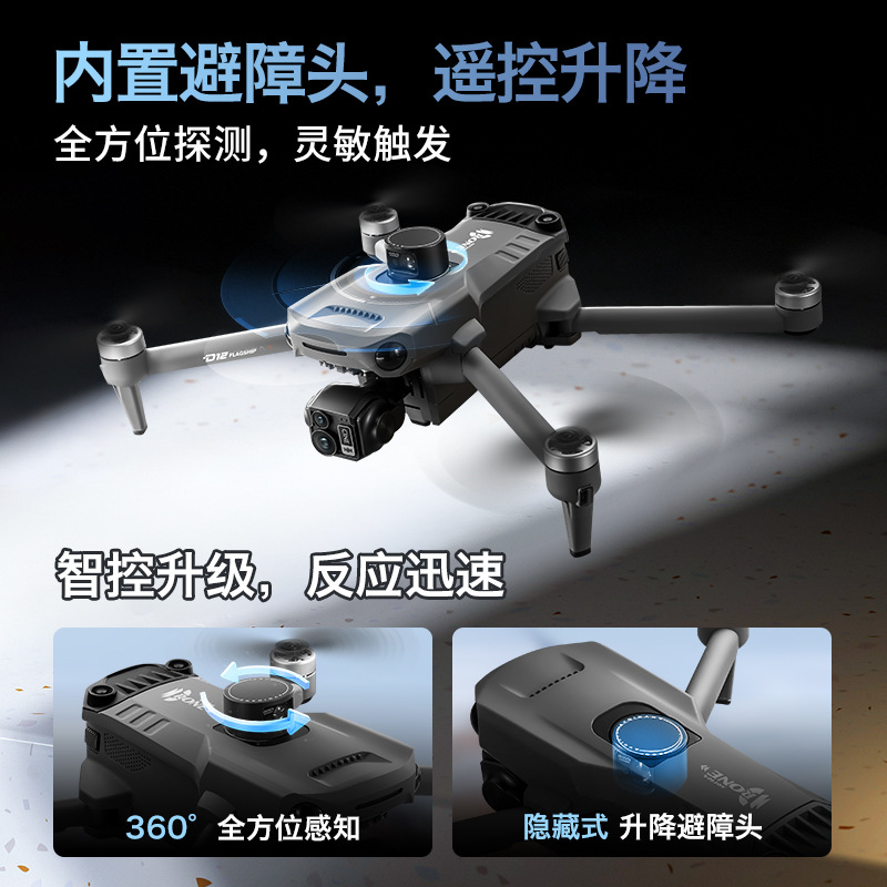 跨境D12三轴云台无人机无刷中继航拍飞行器屏控GPS避障无人机外贸