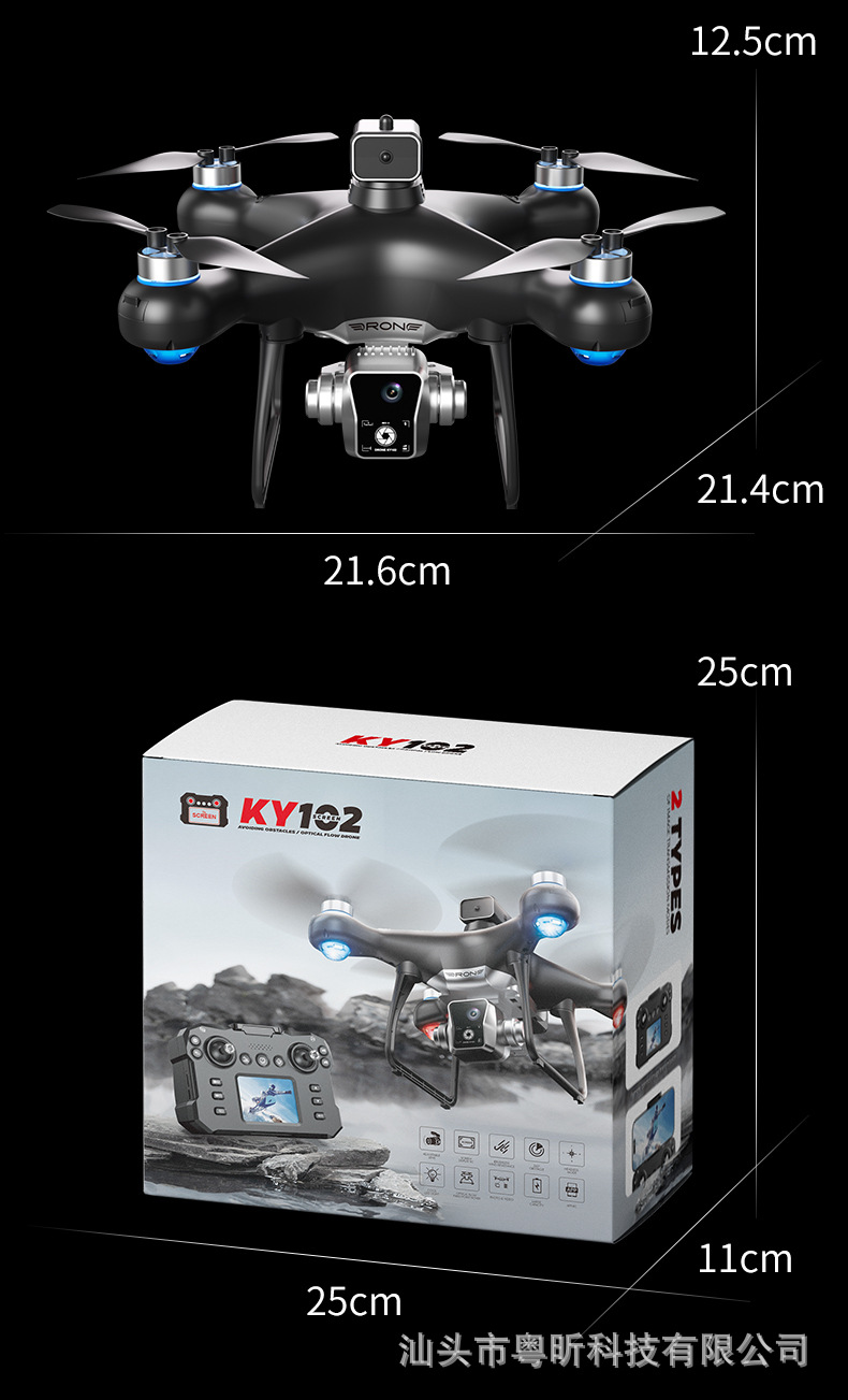 跨境新款4KY102屏控一键升降无刷避障光流无人机高清航拍遥控飞机