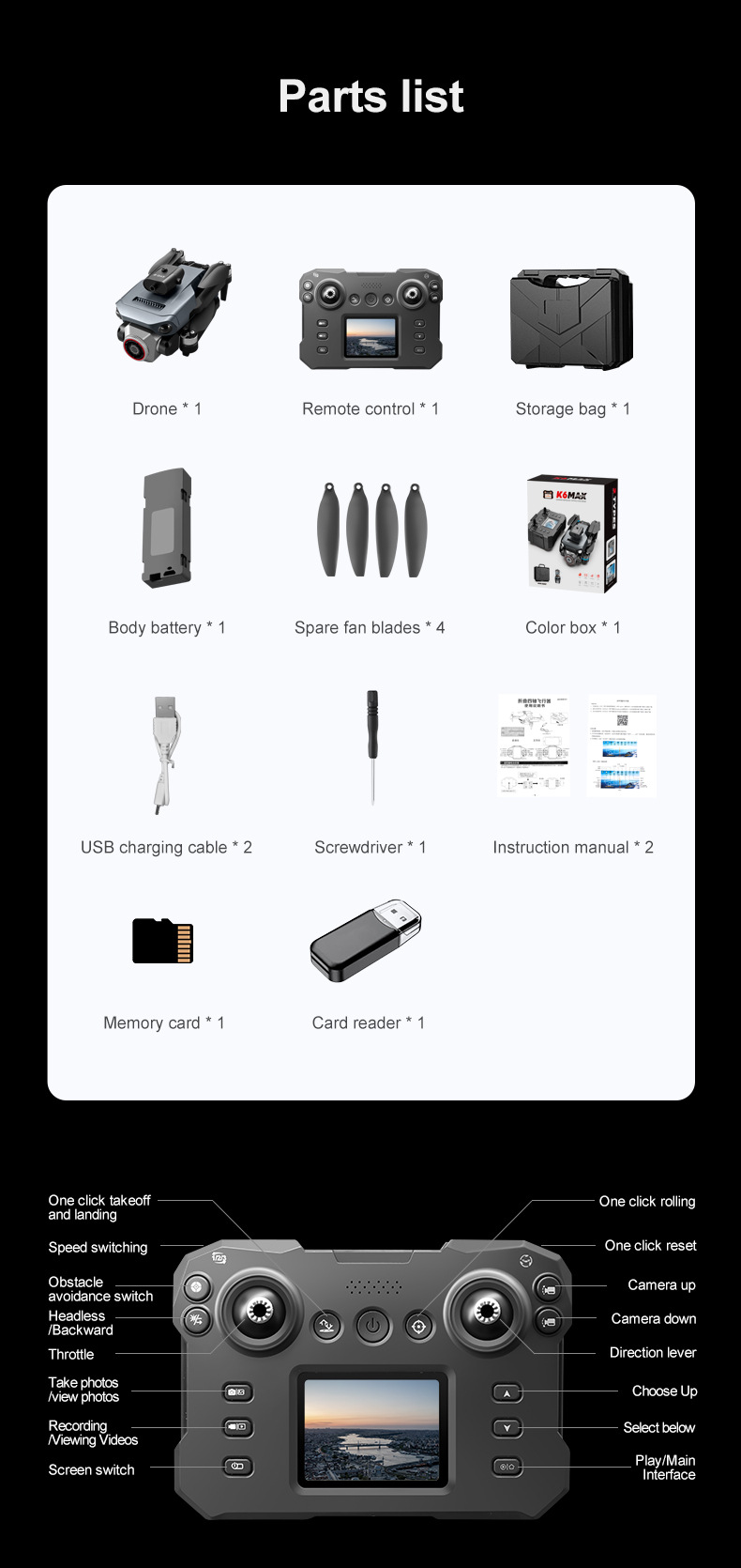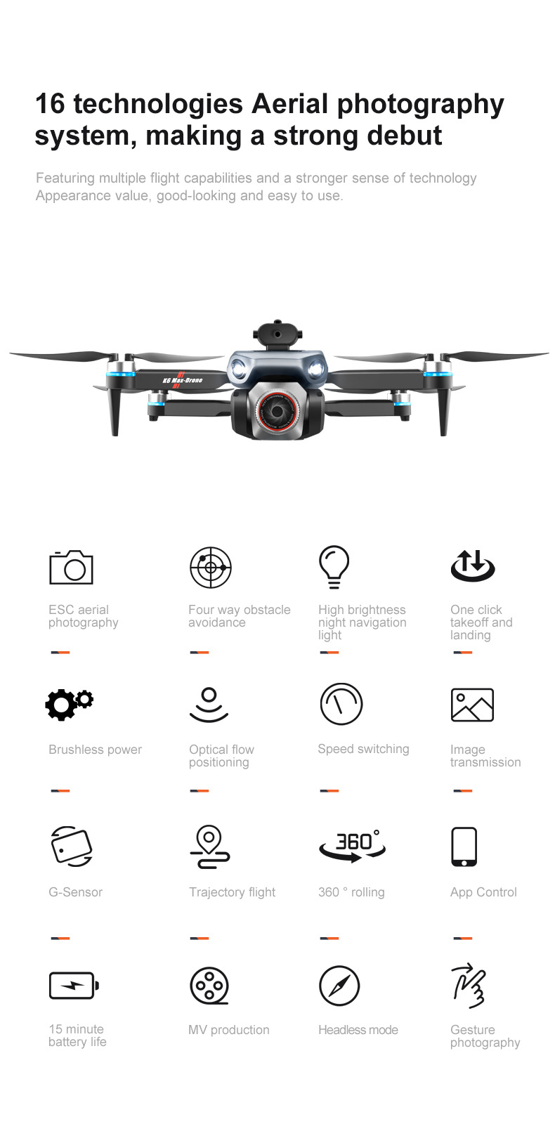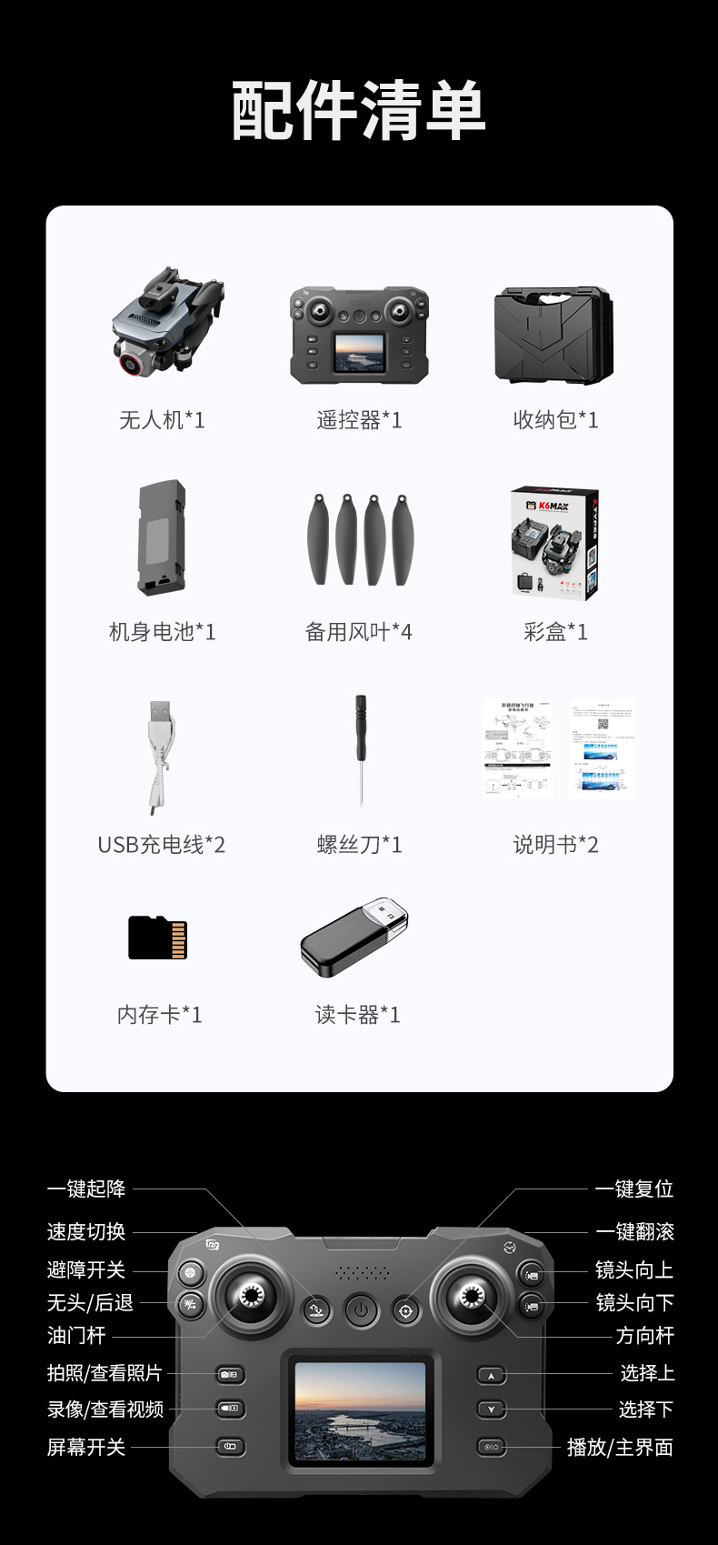 K6MAX无人机带屏控光流定位四轴飞行器无刷马达遥控飞机航模航拍