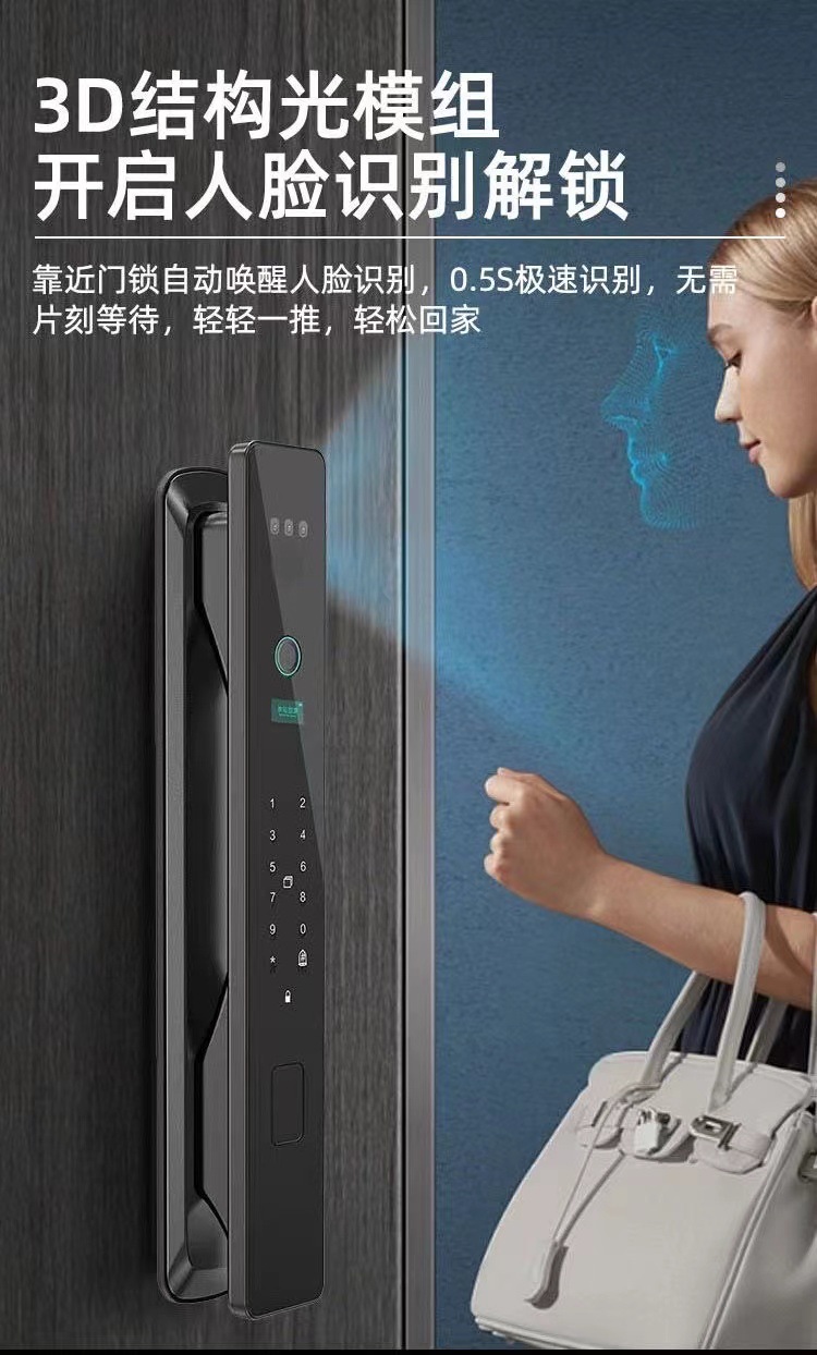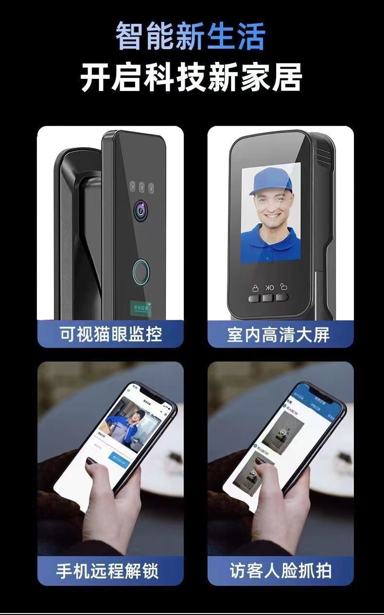 3D人脸识别智能锁公寓密码锁可视猫眼远程电子锁家用防盗门指纹锁