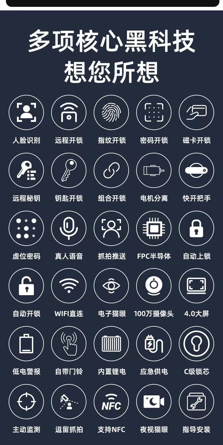 3D人脸识别智能锁家用防盗门指纹锁可视猫眼实时监控密码锁电子锁