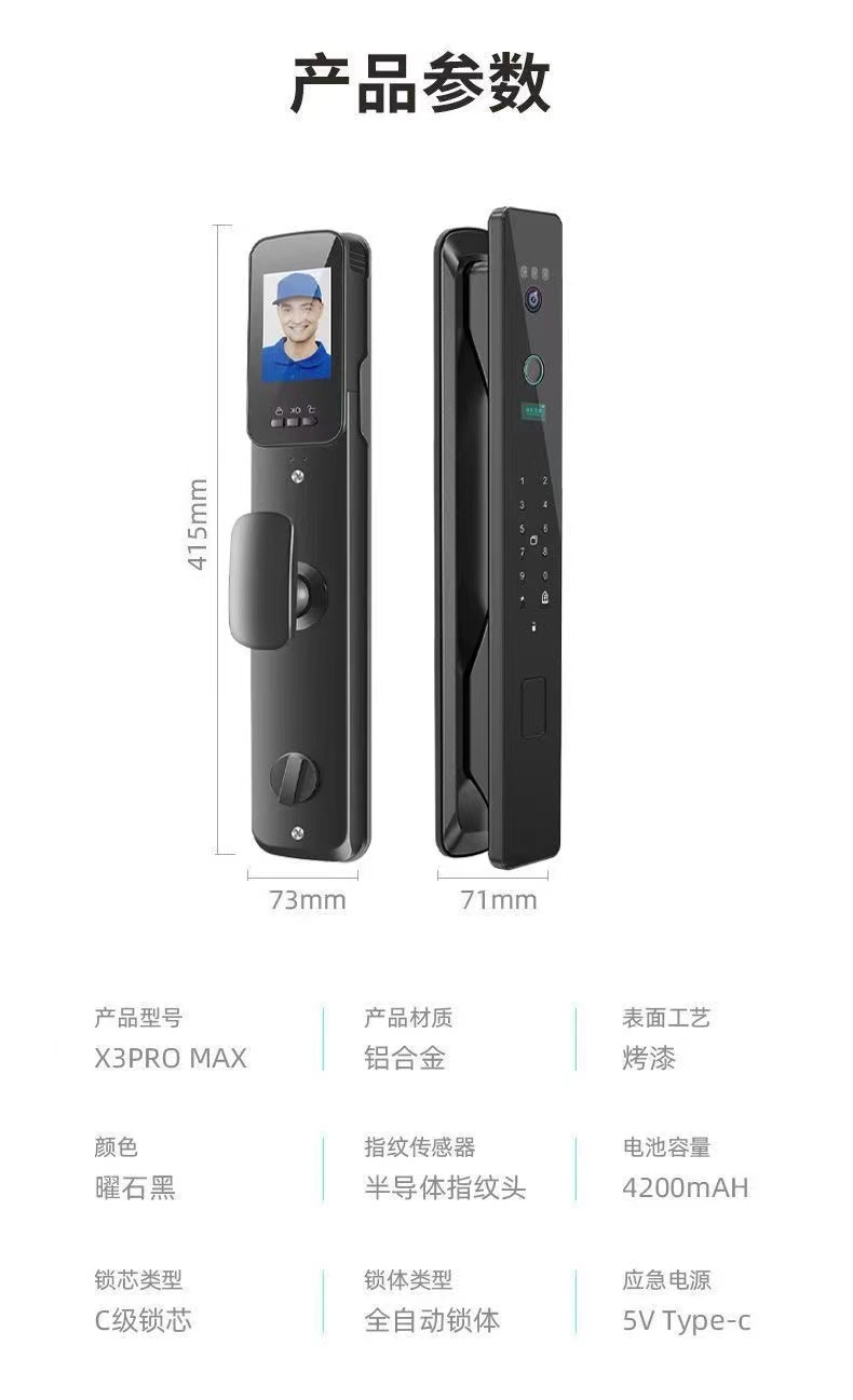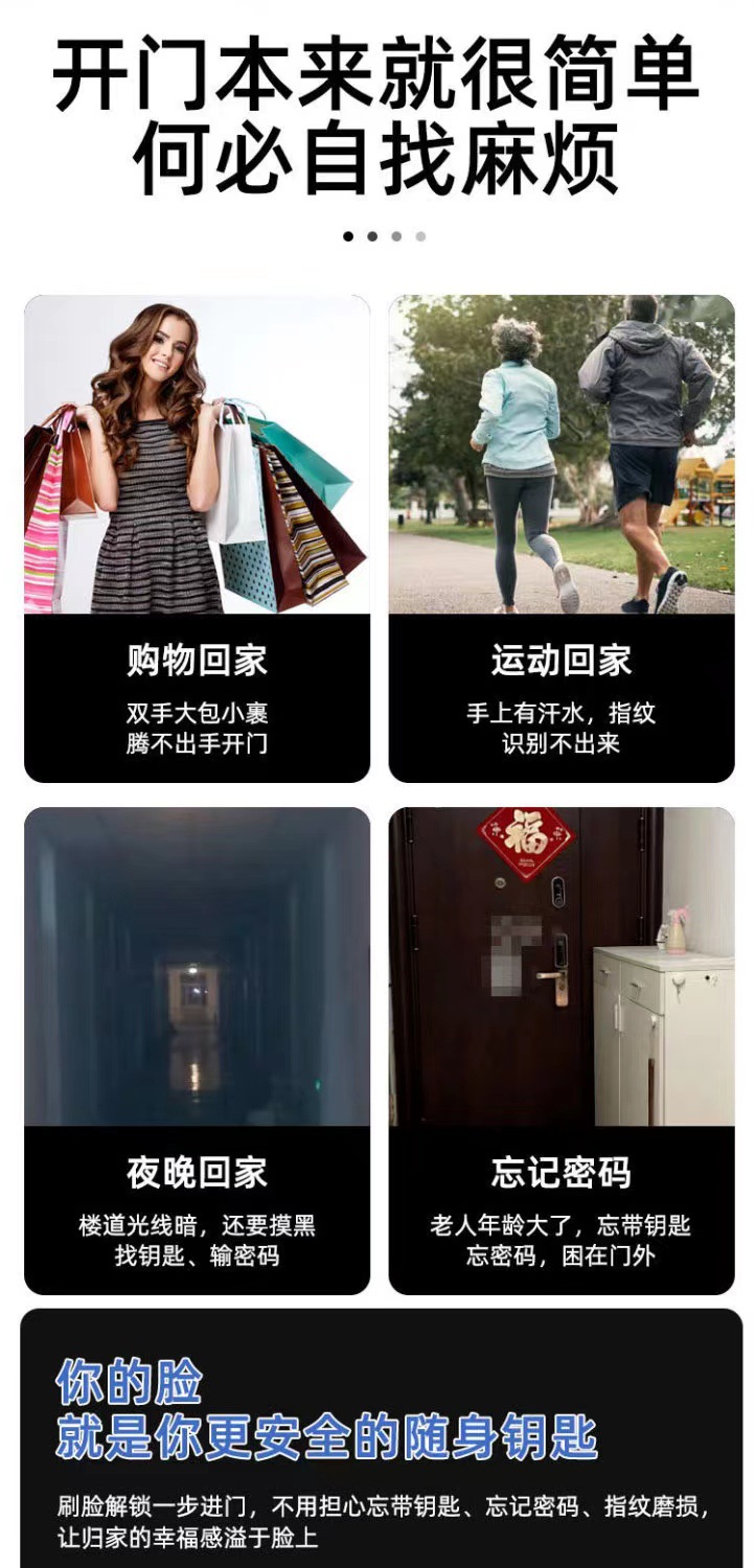 3D人脸识别指纹锁家用防盗门可视猫眼电子锁密码锁智能门锁远程开