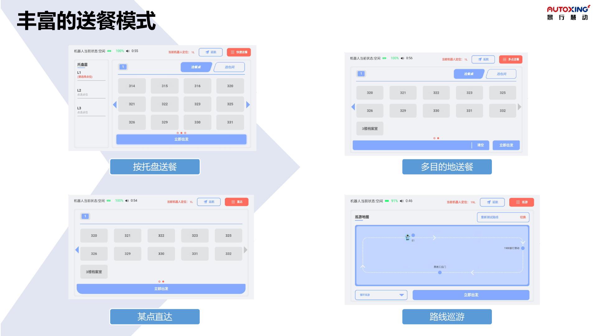 酒店客房办公楼宇外卖无接触送餐送物智能机器人多层自动上梯拨号