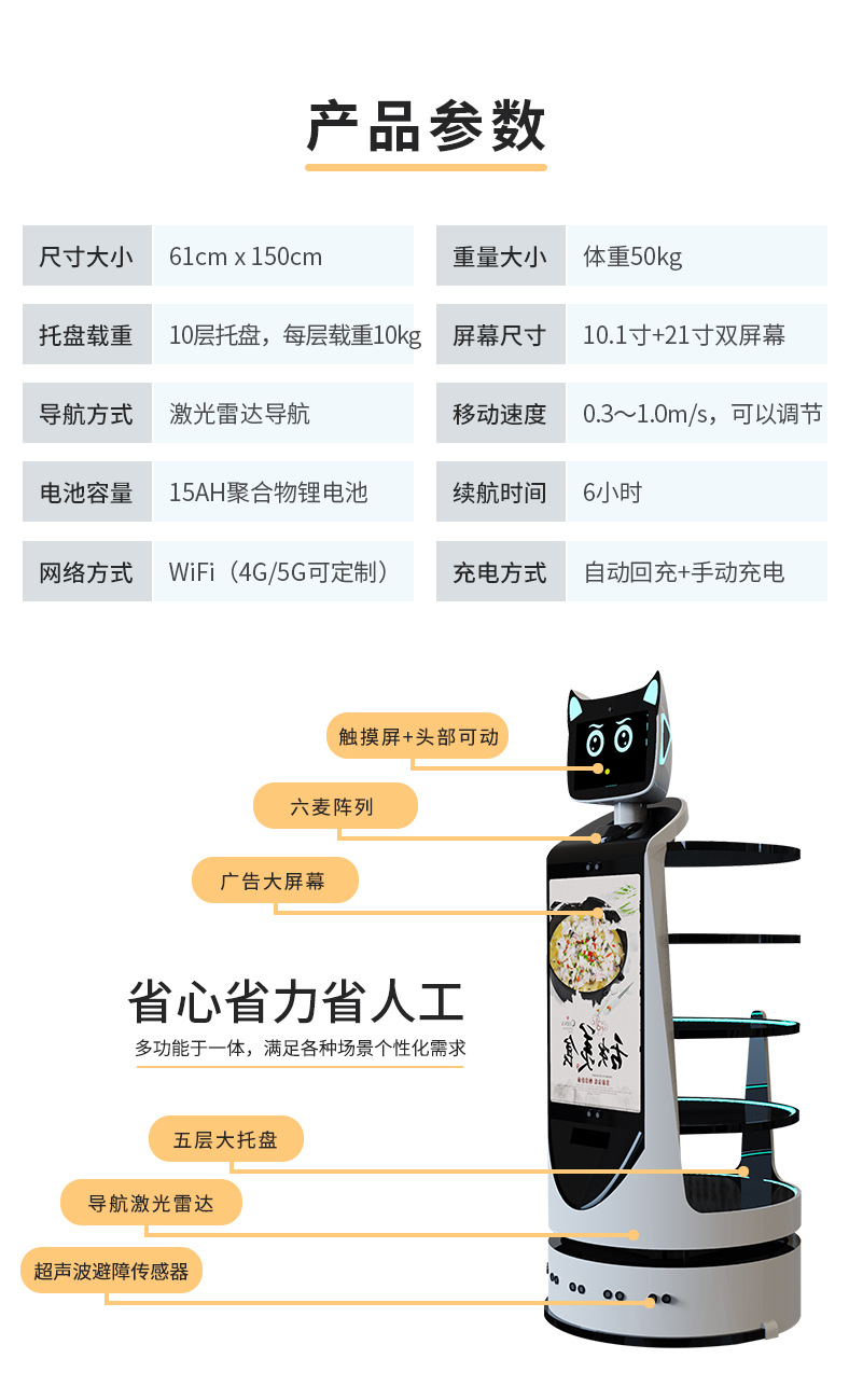 澳博智能送餐机器人传菜端菜送菜机器人全自动服务员餐厅饭店酒楼