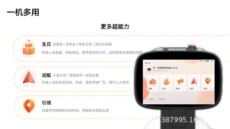 九号饱饱酒店智能送餐机器人送物送外卖自动服务乘梯打电话配送楼
