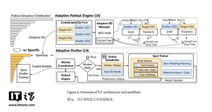 因此,TLT 系统引入了“自适应草稿训练器”。一旦部分处理器完成短查询进入闲置状态,系统会立即调度它们实时训练草稿模型。