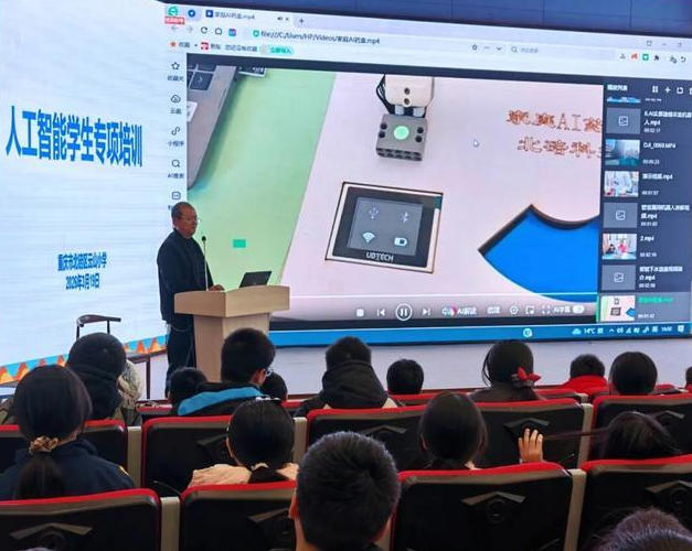 为深入落实教育数字化战略行动,推动人工智能技术与基础教育深度融合,培养学生科技创新素养与数字思维,重庆市北碚区云山小学本学期在延时服务时间,借助国家中小学智慧教育平台,对全体学生分年级进行人工智能专项培训。2026年3月19日,六年级的孩子们在学校报告厅开启了一场趣味人工智能探索之旅。