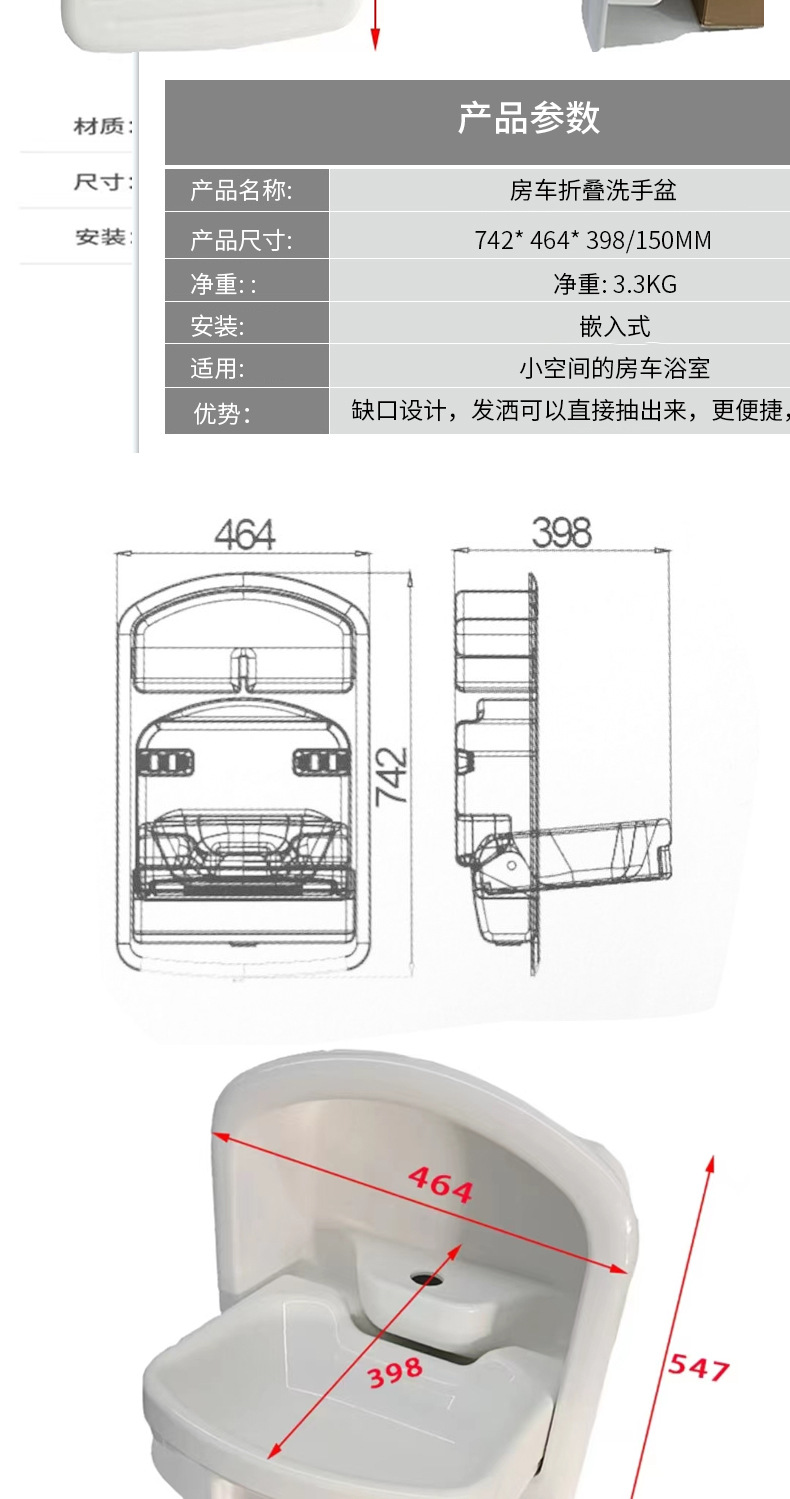 房车水盆 拖挂顺通全大脸维柯床车改装依盆洗手盆S 卫生间折叠水