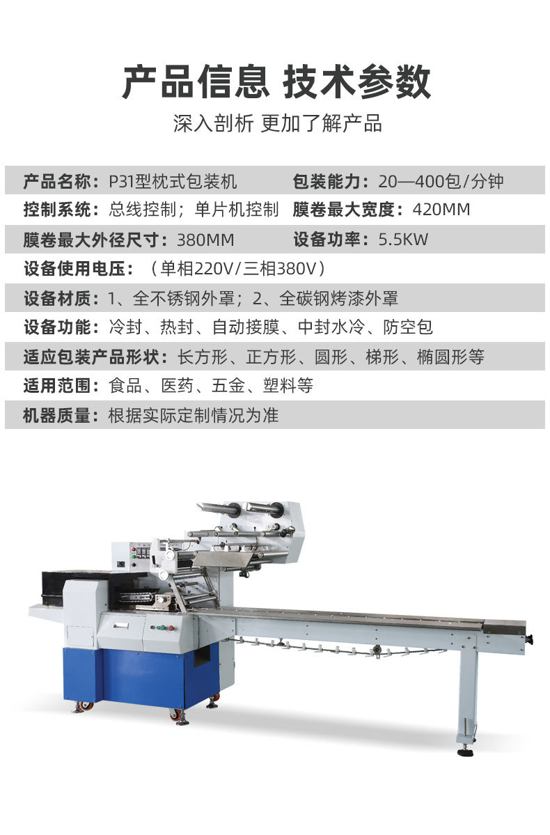 定制全自动食品卧式打包机背封袋型理料线面包饼干三维枕式包装机