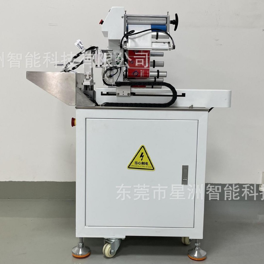 半自动线材对折贴标机电线电源线贴标手动线材自动不干胶 对折贴标