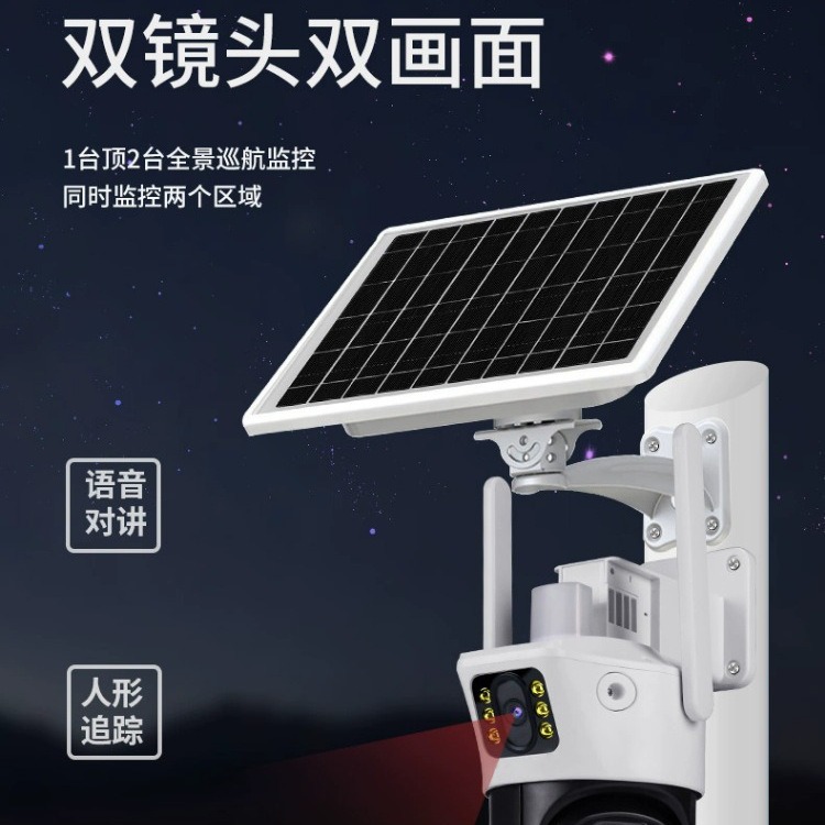 V380太阳能solarcctv摄像头家用手机远程双镜头室外4g太阳能监控