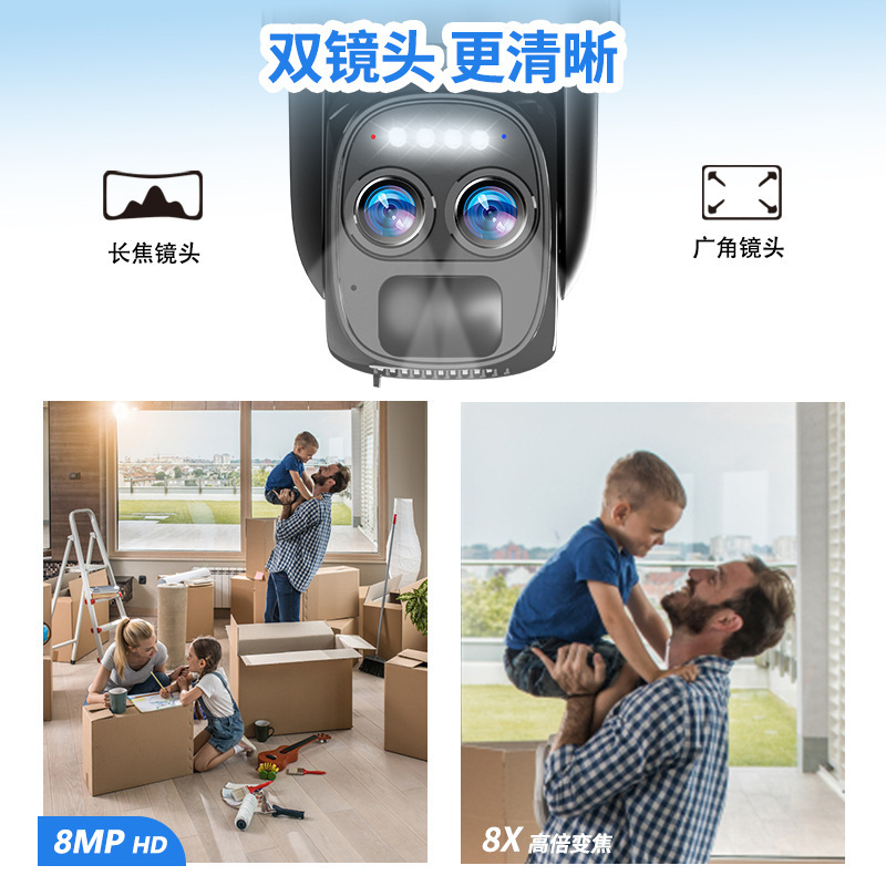 中欧美版太阳能8倍变焦4K摄像头监控无电无网4g/wifi夜视摄像机