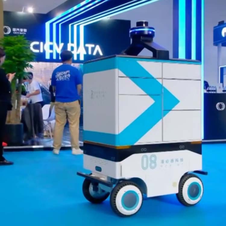 洛必德室外配送室外一体化无人送货小车工厂,电子厂配送自主配送