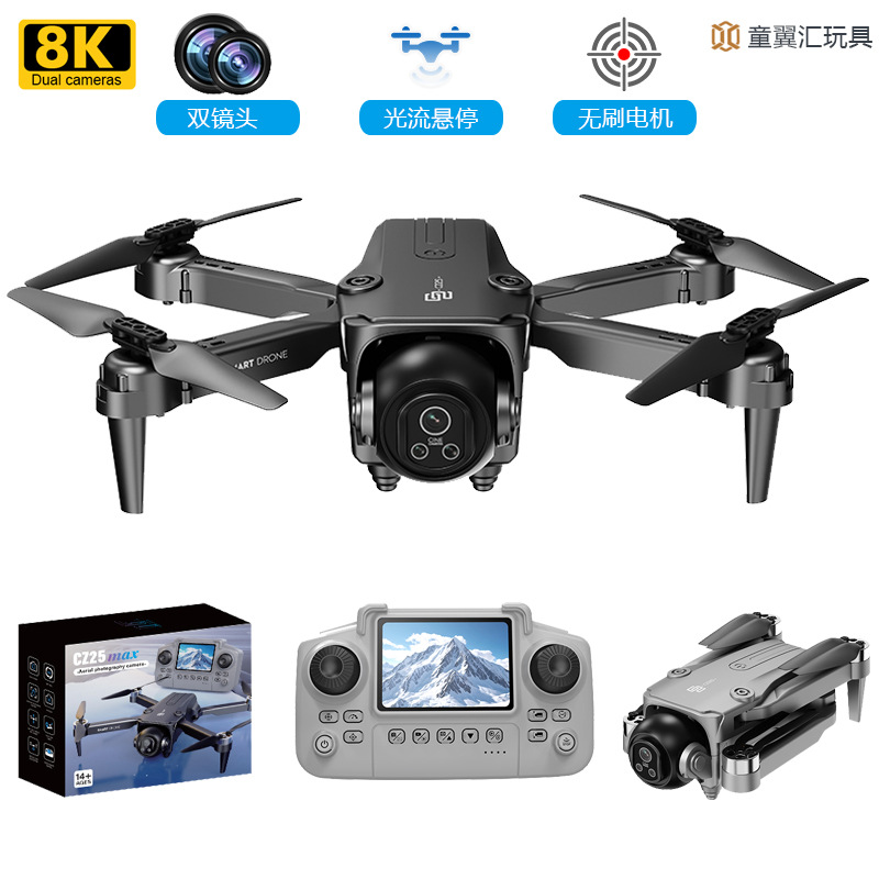 跨境新品CZ25无人机无刷电机光流航拍飞行器带屏图传电调遥控飞机
