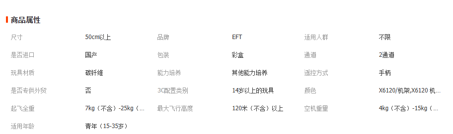 农用无人机EFT翼飞特行业无人机X6120/PNP多功能拓展飞行动力套餐