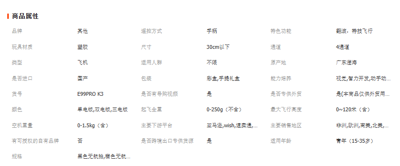 当前页为K3航拍无人机4K双摄像玩具遥控飞机跨境E99折叠drone特技飞行价格信息展示,该页所展示的K3航拍无人机4K双摄像玩具遥控飞机跨境E99折叠drone特技飞行批发价格、K3航拍无人机4K双摄像玩具遥控飞机跨境E99折叠drone特技飞行报价等相关信息均有企业自行提供,K3航拍无人机4K双摄像玩具遥控飞机跨境E99折叠drone特技飞行价格真实性、准确性、合法性由店铺所有企业完全负责。智能化网对此不承担任何保证责任。