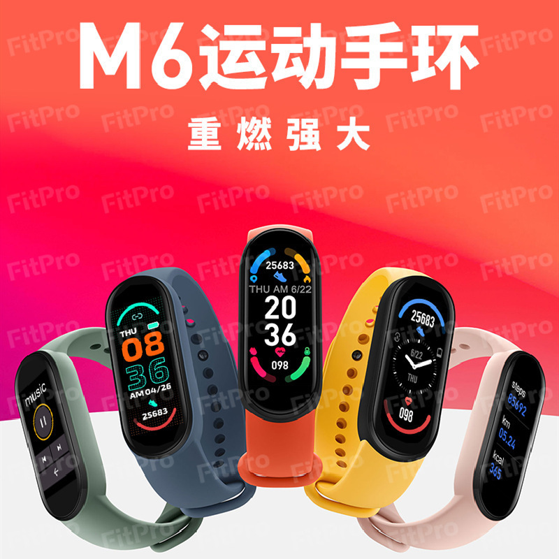 M6彩屏智能手环磁吸运动计步心率来电信息提醒多功能运动手环