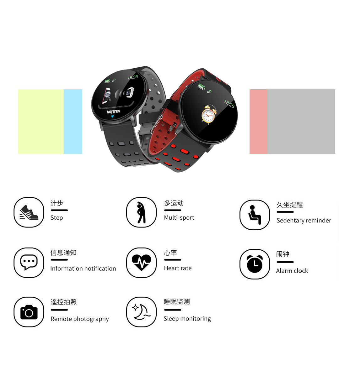 119plus彩屏智能手环蓝牙新款运动计步心率血压睡眠监测蓝牙提醒