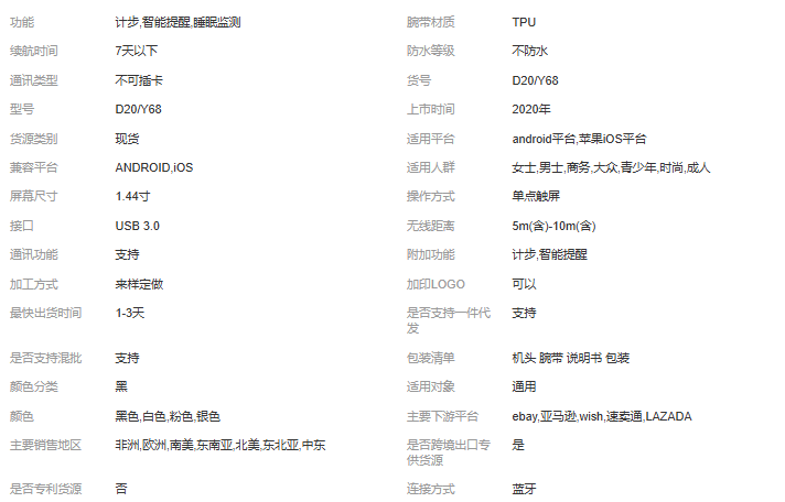 定制D20智能手环Y68蓝牙手环