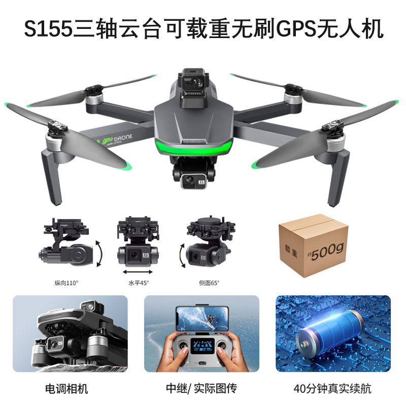 S155无刷无人机GPS定位5G中继三轴云台航拍长续航飞机激光避障