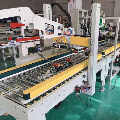 工厂包装机折盖封箱机电商快递纸箱全自动打包机胶带十字