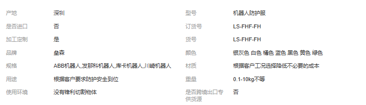 | 主营产品或服务 | 关节型机器人 安保防卫用品 其他身体防护 | ||