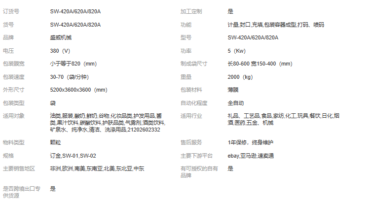 | 主营产品或服务 | 主营: 多功能包装机 充填机械 食药品包装机 | ||
