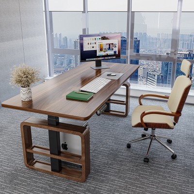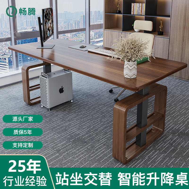 畅腾白蜡木实木电动升降桌可调节高度升降办公桌大班桌老板经理桌