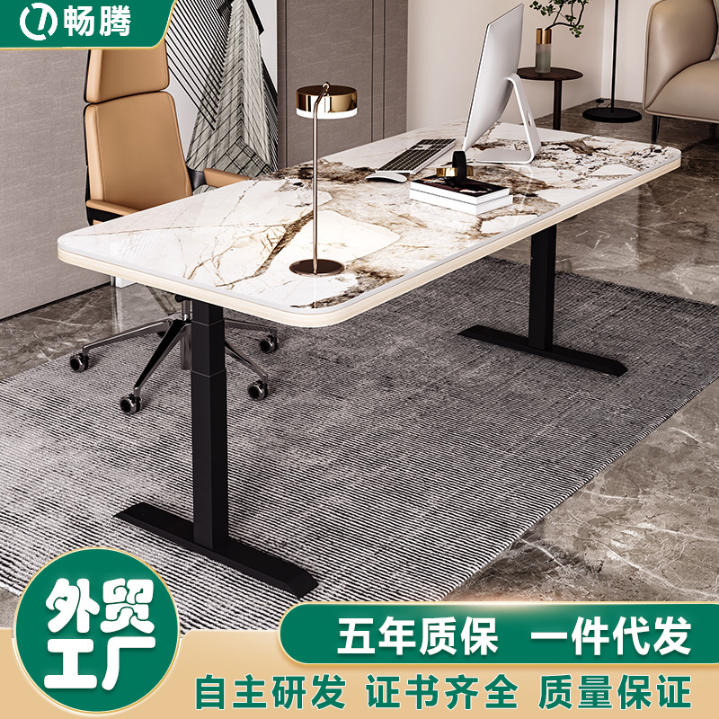 畅腾岩板电动升降桌 双电机正方管升降桌站立式办公电脑升降桌架