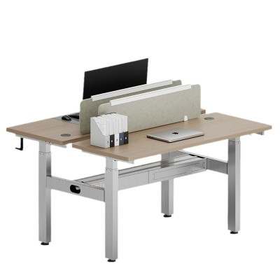 智能电动不锈钢升降桌正装可升降两节四人位办公桌对向坐职员桌子