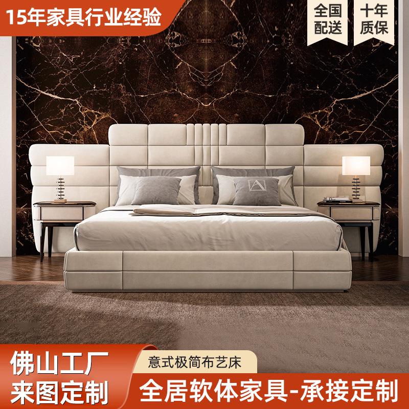 意式极简布艺床轻奢后现代简约高端家具设计师别墅新款大气软床