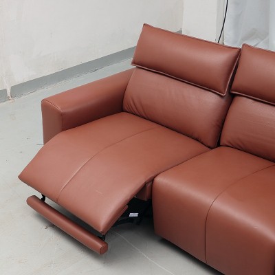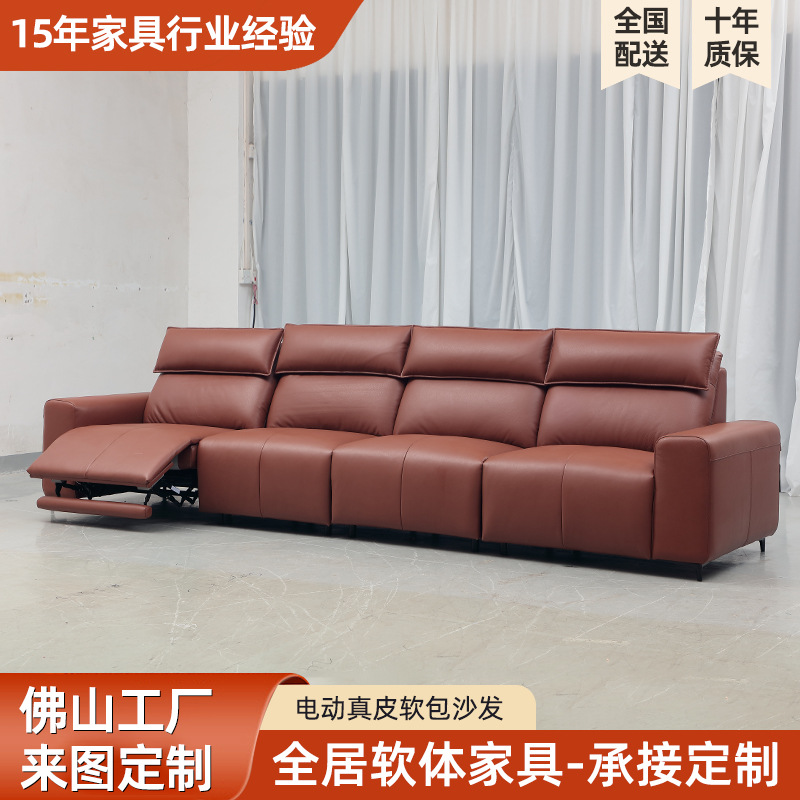 智能电动真皮沙发客厅2025新款头层牛皮棕色可调节靠墙直排沙发
