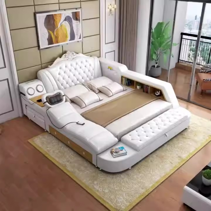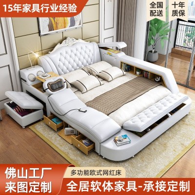 智能按摩榻榻米真皮床主卧双人床1.8米现代简约多功能欧式网红床