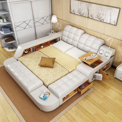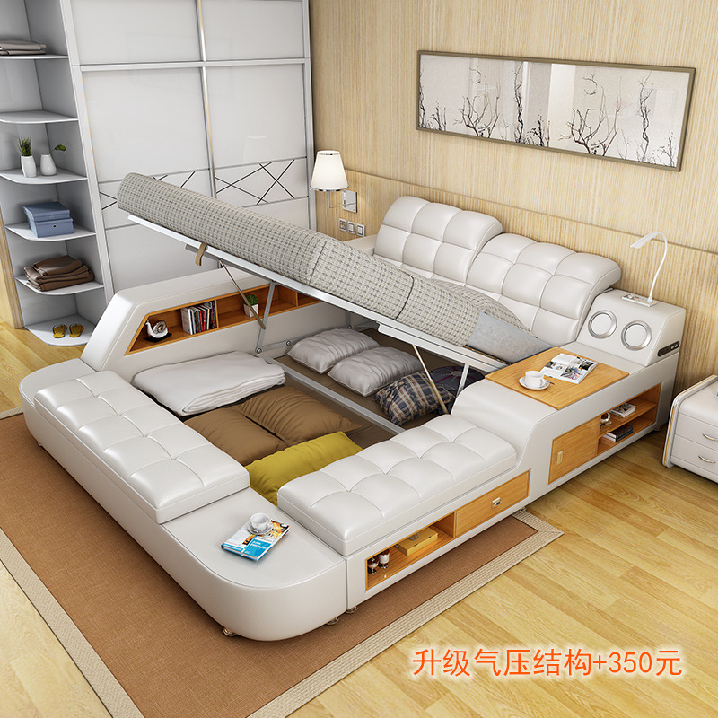 Leather bed皮床大户型多功能皮艺床现代简约榻榻米床主卧外贸床