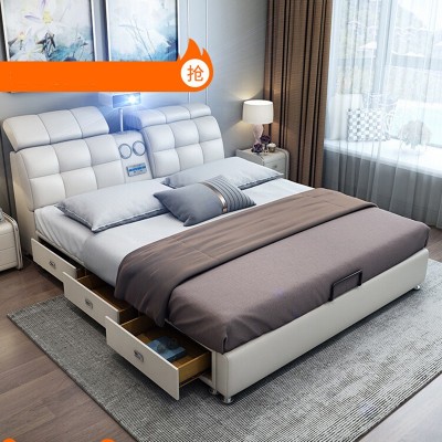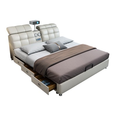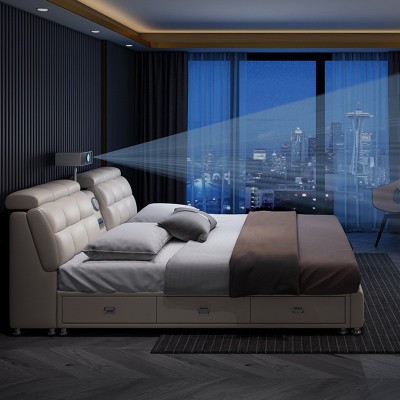 皮床小户型投影仪音响智能USB充电多功能床齐边储物卧室软床