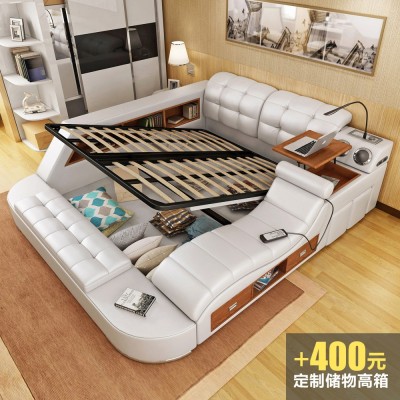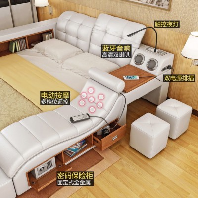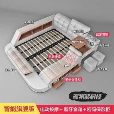 大户型主卧软床外贸多功能按摩床现代简约1.8米双人榻榻米皮床