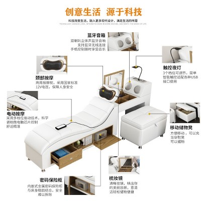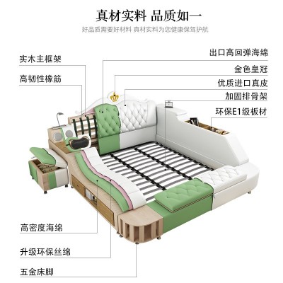 外贸多功能按摩储物双人床1.8米皮艺大床欧式榻榻米皮床卧室家具