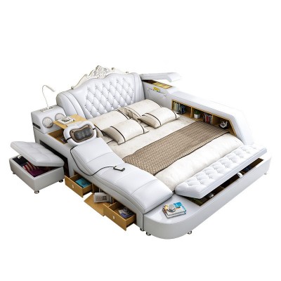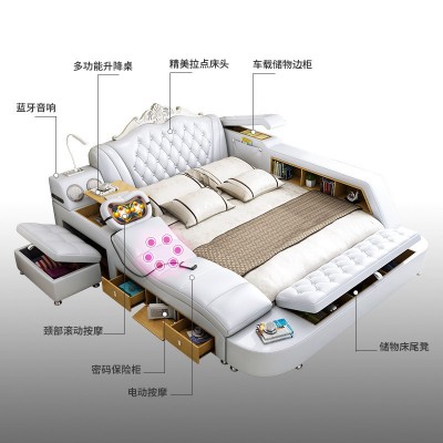 按摩榻榻米皮床大户型主卧床 欧式1.8米双人婚床多功能外贸皮床