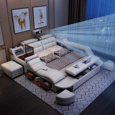 榻榻米床 布艺床现代简约智能按摩床双人床1.8米婚床主卧科技布床