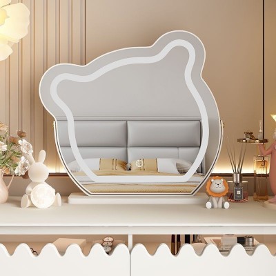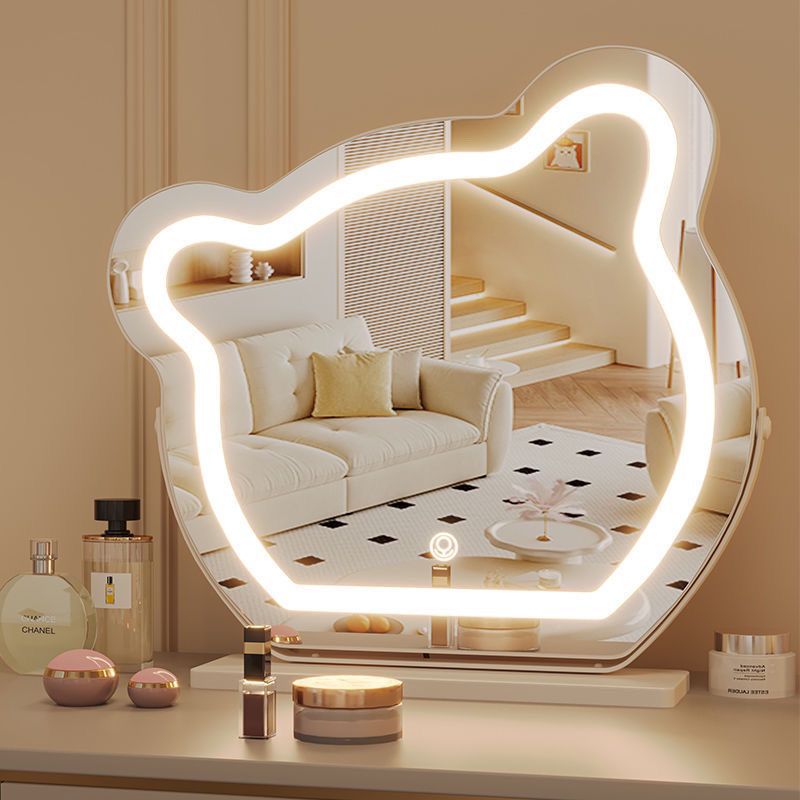 网红小熊化妆镜台式LED灯镜镜子桌面智能梳妆镜轻奢带灯梳妆台