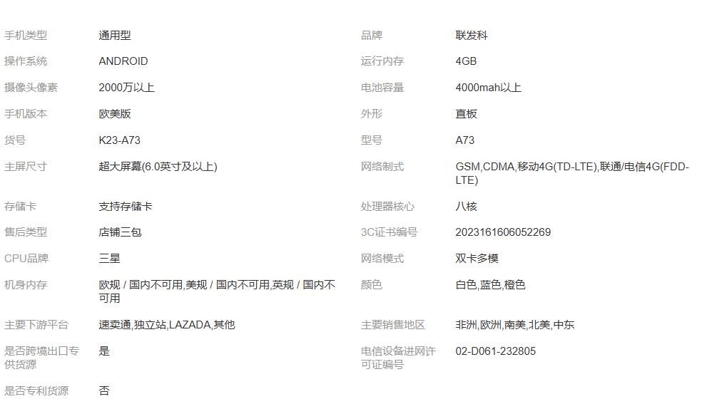 跨境Galax A73智能手机6.8寸6+128GB 亚马逊 美客多 TK沃尔玛OZON