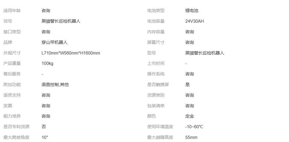 穿山甲黑猫警长巡逻机器人自主巡逻360°视频监控智能分析机器人