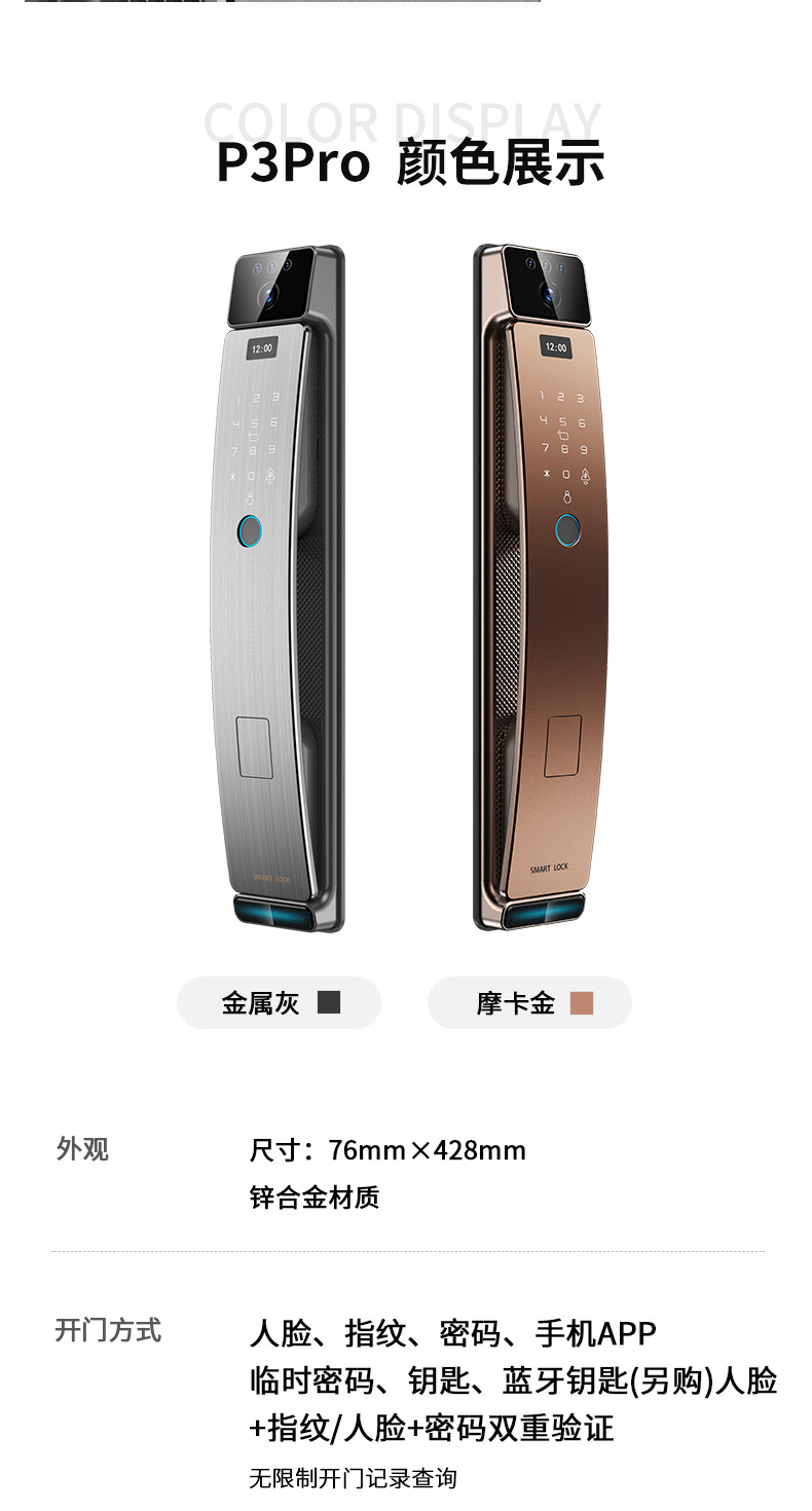 3D人脸识别指纹锁对讲门电子锁密码锁可视猫眼门禁智能安全防护