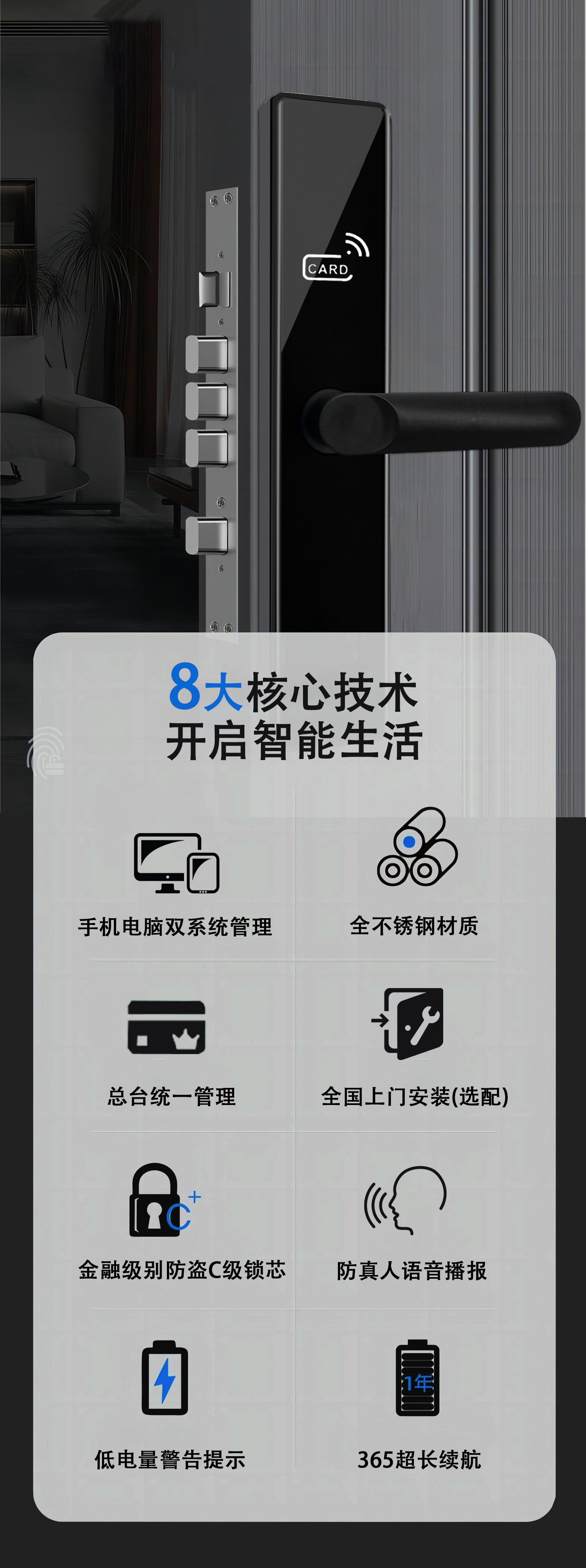 不锈钢酒店木门刷卡门锁涂鸦民宿公寓密码锁家用指纹智能锁电子锁