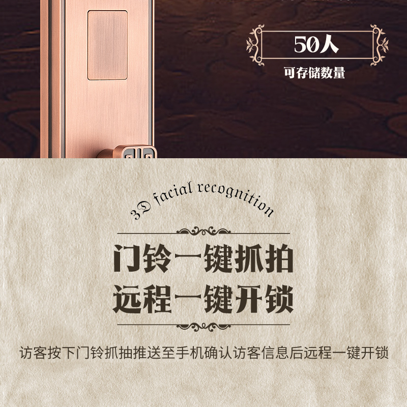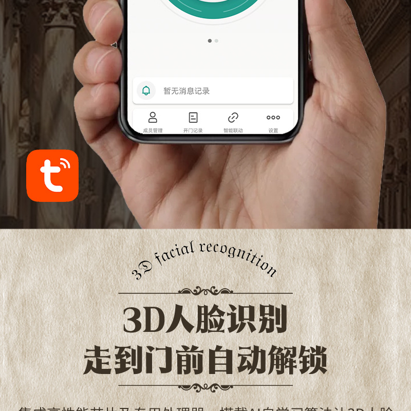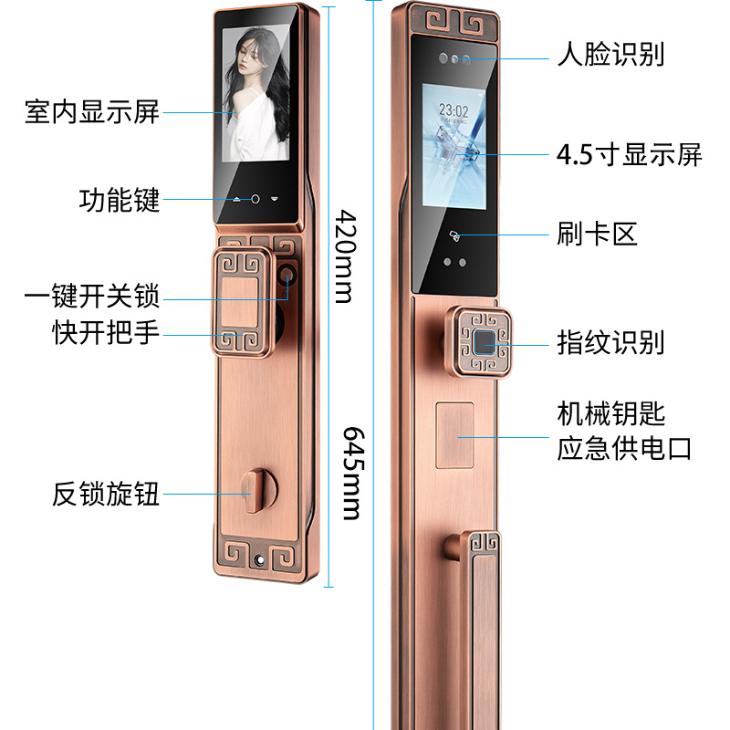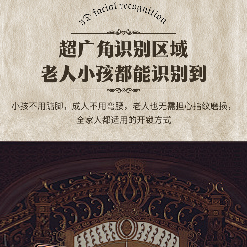3D人脸识别智能锁别墅双开大门入户门家用防盗门指纹锁指纹解锁