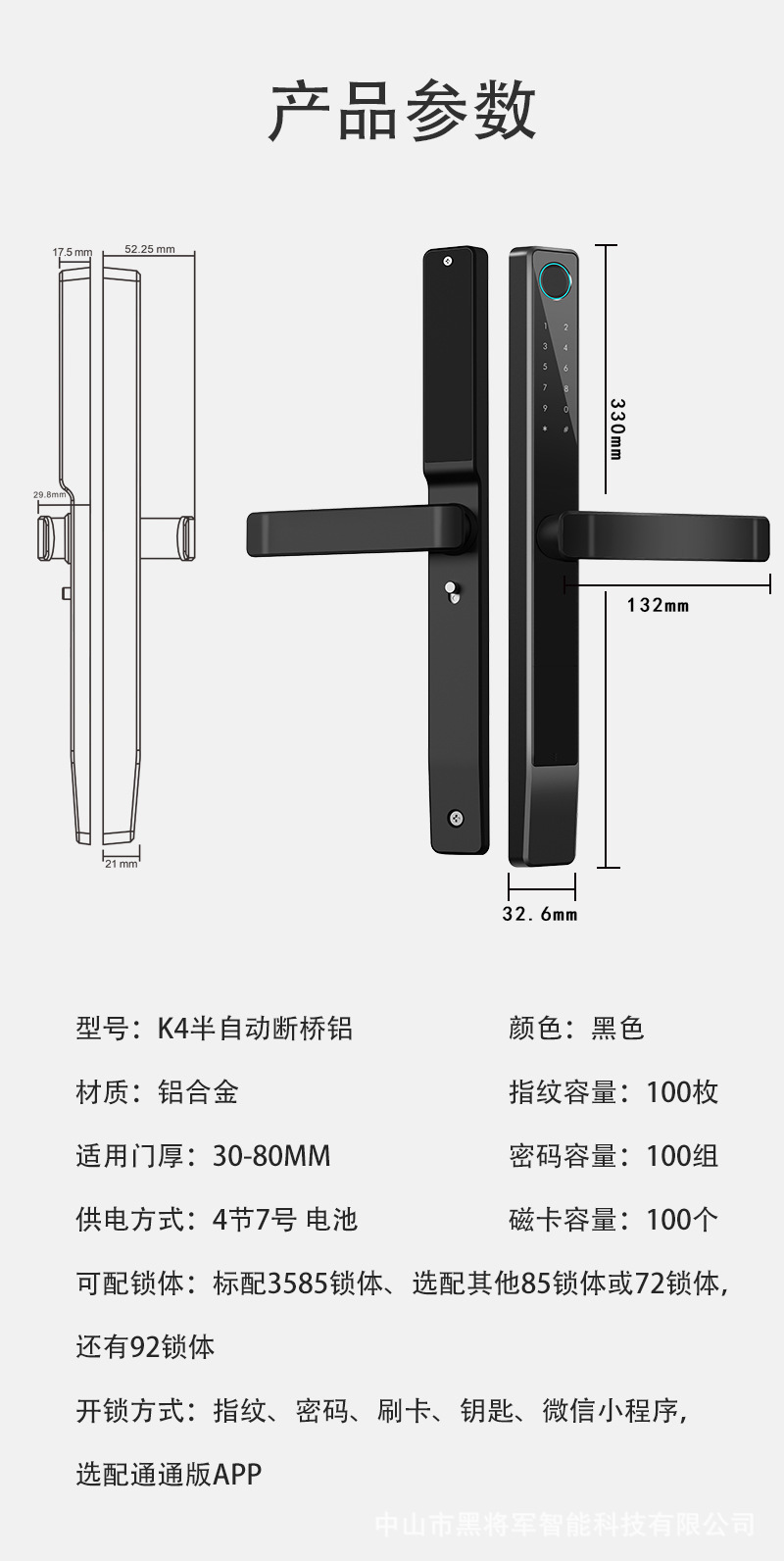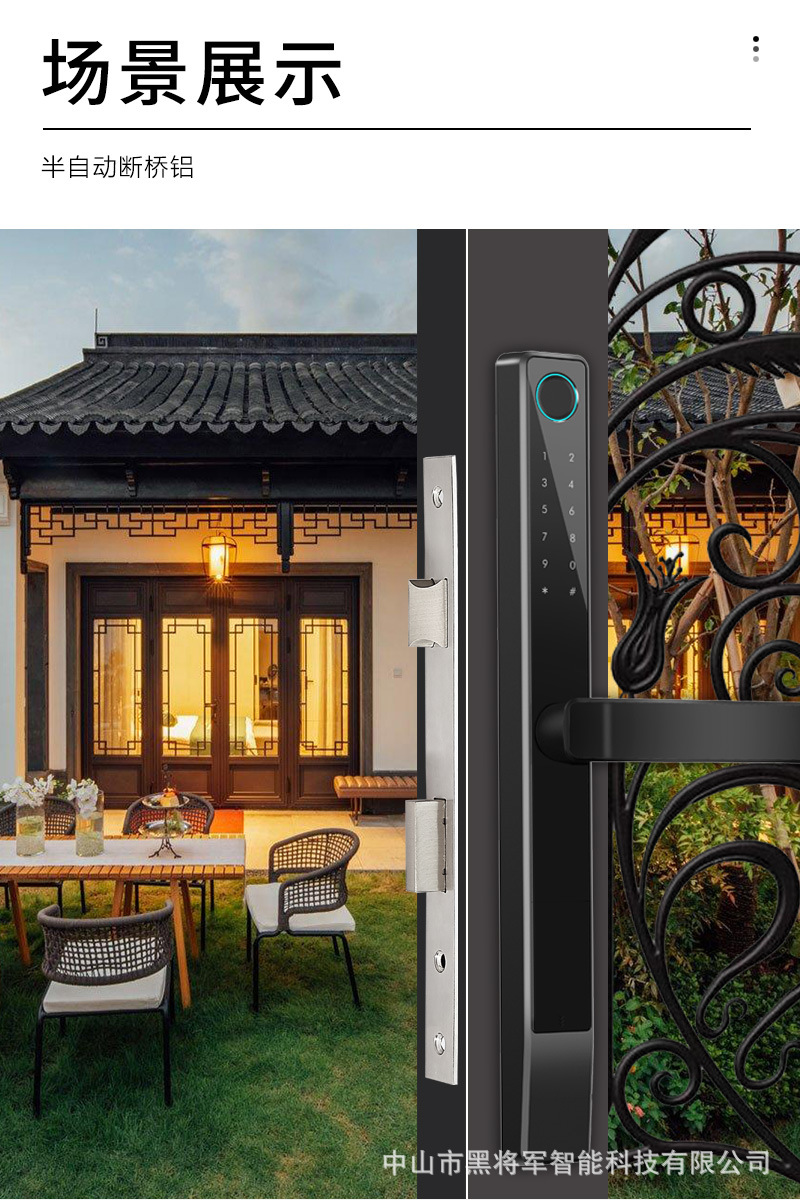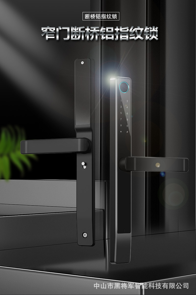 黑将军智能锁断桥铝窄门肯德基门断桥铝门平移门推拉门指纹密码锁