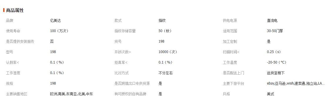 | 主营产品或服务 | 指纹锁;密码锁;酒店锁;桑拿锁;办公室门禁锁;智能门锁;智能密码锁;电子锁;密码锁入户门密码锁;指纹密码锁;玻璃门指纹锁;电子锁智能门锁;指纹智能锁;智能指纹锁;密码锁家用;全自动指纹锁;玻璃门密码锁;智能门锁家用;指纹锁全自动;门锁智能 | ||