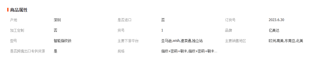 | 主营产品或服务 | 指纹锁;密码锁;酒店锁;桑拿锁;办公室门禁锁;智能门锁;智能密码锁;电子锁;密码锁入户门密码锁;指纹密码锁;玻璃门指纹锁;电子锁智能门锁;指纹智能锁;智能指纹锁;密码锁家用;全自动指纹锁;玻璃门密码锁;智能门锁家用;指纹锁全自动;门锁智能 | ||