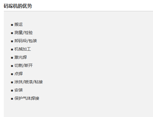 码垛设备:机械与计算机程序有机结合的产物。为现代生产提供了更高的生产效率。码垛机器在码垛行业有着相当广泛的应用。码垛机器人大大节省了劳动力,节省空间。码垛机器人运作灵活精准、快速高效、稳定性高,作业效率高。